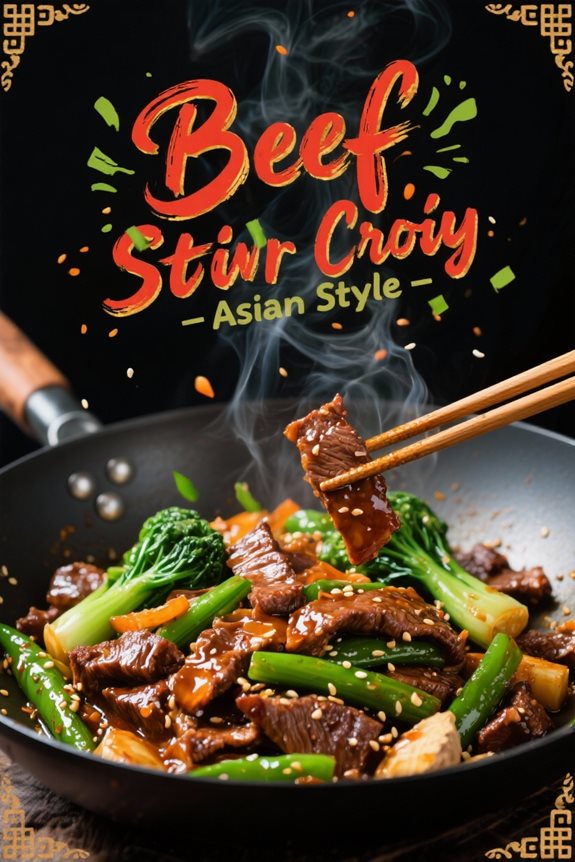 You’ll appreciate how quickly this dish comes together—just 15 minutes of marinating time and less than 10 minutes of cooking. The combination of tender beef strips with crisp, vibrant vegetables creates perfect textural contrast, while the aromatic blend of garlic, ginger, and sesame oil infuses every bite with authentic Asian flavors. It’s incredibly versatile too; substitute your favorite vegetables or protein based on what you have available. Best of all, it’s healthier than takeout, with reduced sodium soy sauce and fresh ingredients that you control.