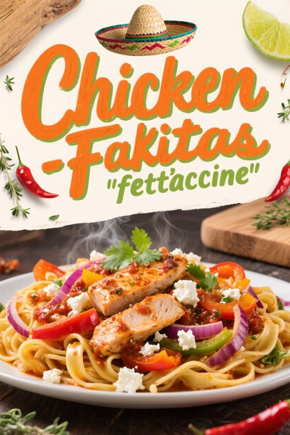 I’ve created a new pasta dish that combines the bold flavors of Tex-Mex cuisine with the comfort of Italian fettuccine. My Chicken Fajita ‘Feta’ccine merges sizzling fajita-spiced chicken with colorful bell peppers and onions, all tossed with pasta and creamy feta cheese. It’s a 30-minute meal that delivers the zesty punch you crave with the satisfaction of a hearty pasta dinner. The secret lies in how these seemingly different culinary traditions complement each other in unexpected ways.
