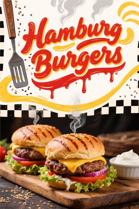 For the cooking itself, you’ve got options: either fry these beauties in a skillet over low heat, giving them about 4-5 minutes per side, or fire up the grill and cook them over medium heat until they reach your desired doneness. For the ultimate outdoor cooking experience, consider using an outdoor grill smoker combo which gives you versatility to both grill and infuse smoky flavor into your hamburgers.