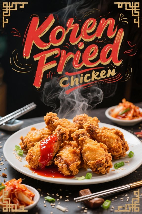 I’ve fallen in love with Korean Fried Chicken for its incredible texture and flavor that sets it apart from any other fried chicken. The double-frying technique creates that signature ultra-crispy exterior while keeping the meat inside perfectly juicy. When I make it at home, I notice how the cornstarch and self-rising flour create a lighter, crunchier coating than traditional American versions. Want to know my secret for achieving that restaurant-quality crunch every time?