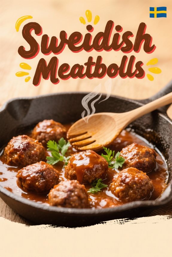 I’ve discovered that Swedish meatballs aren’t just dinner—they’re an experience worth sharing. These tender, juicy morsels bathed in a sweet-tangy glaze combine chili sauce and grape jelly in a way that’ll make you question everything you thought you knew about meatballs. They’re perfect for entertaining because you can prepare them ahead, letting you enjoy your guests instead of the kitchen. But what makes these bite-sized delights truly special goes beyond their easy preparation…