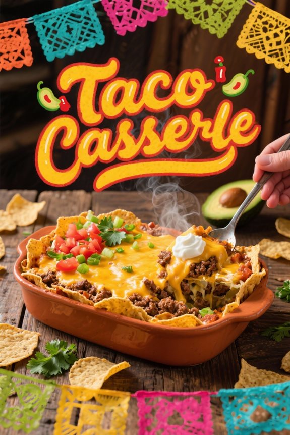 I’ve transformed my family’s traditional taco night into something even more satisfying—taco casserole. This one-dish wonder combines seasoned ground beef, creamy layers, and crunchy tortilla chips into a meal that pleases everyone at my table. When I need a quick dinner solution that doesn’t sacrifice flavor, this recipe consistently delivers. The beauty lies in its versatility; you can customize it countless ways while maintaining that unmistakable taco essence. Wait until you see how simple the preparation actually is.